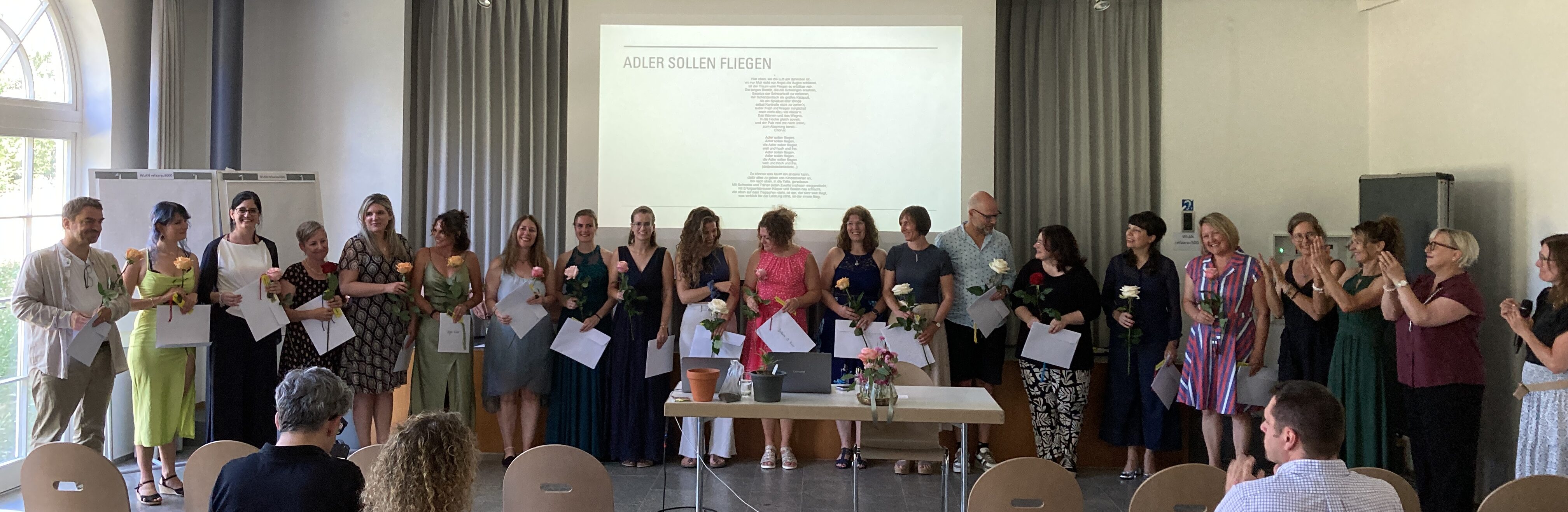 Am 22. Juni fand bei schönstem Wetter die offizielle Abschlussfeier der Ausbildungsgruppe 12 in Aarau statt. Was für ein schöner und auch etwas wehmütiger Moment für die 19 Studierenden, die zwei Tutorinnen Christine Beyeler und Ulrike Kolb-Messmer und die Ausbildungsgruppenleiterin Susanne Müller-Klauser. Auf der einen Seite der Lohn am Ende einer 3-jahrigen individualpsychologischen Ausbildung, auf der anderen Seite sind die monatlichen Treffen im geschützen und familiären AFI-Rahmen, wo man über die drei Jahre mit so vielen persönlichen Erfahrungen, Erkenntnissen und wertvollem Austausch zusammengewachsen ist, nun zu Ende.